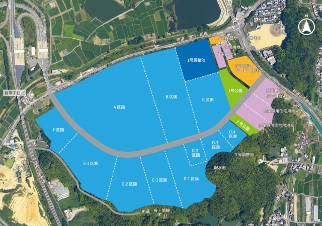 49haもの広大な土地に、「研究開発型産業施設用地」を主としつつ、商業施設用地・住宅用地等も設けることにより、
