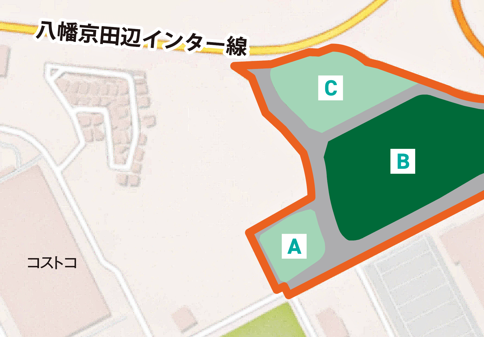 本事業地は、関西圏の東西・南北を結ぶ「第二京阪道路」と「新名神高速道路」が交差する、極めて優れた交通条件を備えたエリアに位置しています。八幡京田辺JCTをはじめ、京田辺松井IC、八幡京田辺ICに近接しており、大阪・京都・滋賀・神戸方面へのスムーズなアクセスが可能です。さらに、八幡インター線および交野久御山線にも接続しており、高速道路と一般道路の双方を活用した柔軟な交通動線を実現しています。