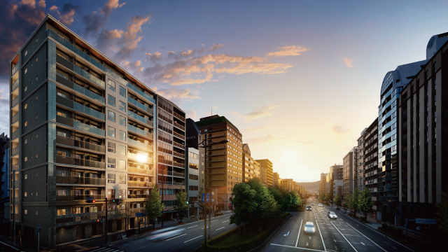 新たな京都暮らしの概念を。田の字エリア内、五条通に面する南向き中心のランドマークレジデンス。