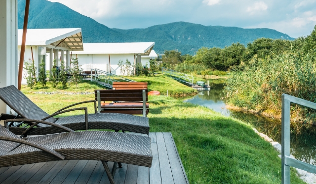 時間のうつろいを感じられる風景の美しさと場内設備の快適性を両立させた旅の目的地になるRVパークです。